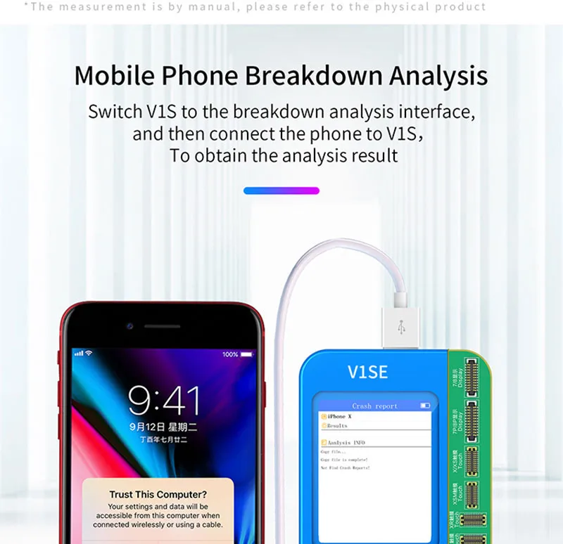 switch v1s to the breakdown analysis interface,and then connect the phone to v1s,to obtain the analysis result