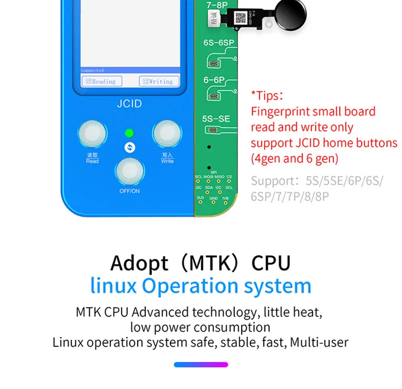 fingerprint adaptor:support 5s-8p.read the fingerprint serial number automatically.write the fingerprint serial number to jc home buttons